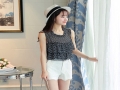 實(shí)拍夏季新款女裝韓范無(wú)袖波點(diǎn)雪紡衫蕾絲短褲子兩件套套裝 /