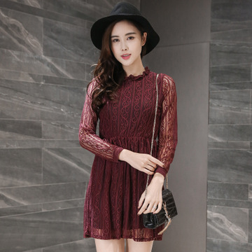 2016韓國東大門代購春裝新款韓版性感蕾絲碎花大碼打底裙連衣裙女 /