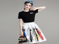 歐美春夏新款女裝字母T恤+抽象印花蓬蓬半裙時(shí)尚套裝 /