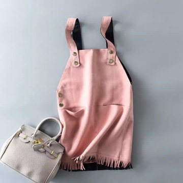 鹿皮絨簡約直筒背帶裙 /