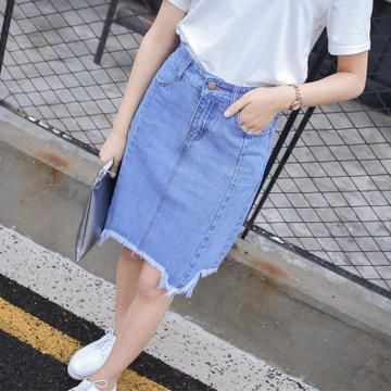 【實拍】牛仔裙半身裙女a(chǎn)字包臀裙一步裙韓版顯瘦短裙子新款 /