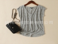 歐美外貿(mào)2016新款 落肩短袖V領(lǐng)釘珠亞麻修身廓型顯瘦T恤 上衣女 /