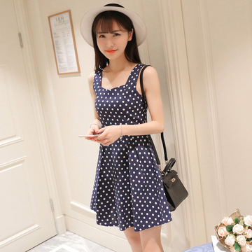 2016夏新款韓版女裝吊帶波點修身顯瘦打底背心無袖連衣裙 /