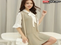 2016夏新款韓版拼接雪紡領(lǐng) 袖休閑學(xué)院風(fēng)蝴蝶結(jié)寬松連衣裙女現(xiàn)貨 /