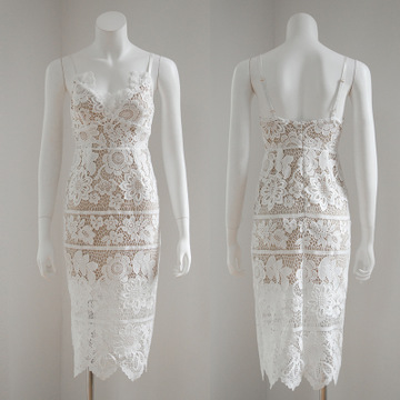 特出口英國單2016年夏季新款交叉吊帶水溶蕾絲勾花連衣裙 /