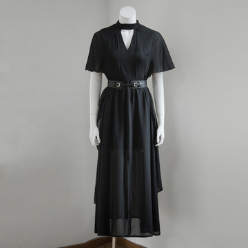 2016年夏季新款雪紡收腰顯瘦百褶連衣裙拖地長裙 /