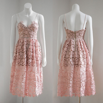 特價2016年夏季新款SP同款高端勾花蕾絲吊帶高腰連衣裙 /
