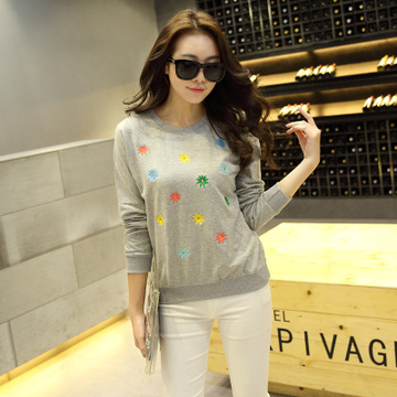春秋新款套頭卡通衛(wèi)衣打底衫女長(zhǎng)袖韓版學(xué)生衫寬松圓領(lǐng)繡花上衣裝 /