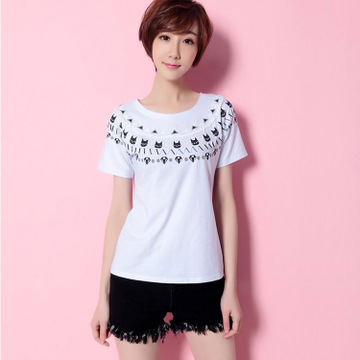 2016夏裝新款韓版女裝全棉百搭修身卡通圓領(lǐng)短袖t恤衫一件代發(fā) /