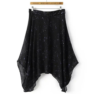 2016新款夏季女裝走秀不規(guī)則中長款半身裙星空印花雪紡短裙 /