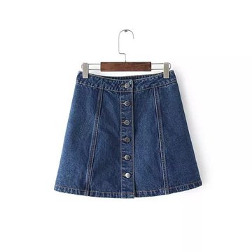 2016夏季新歐美風(fēng)AA款休閑百搭前排扣純色女士牛仔半身裙一步裙 /