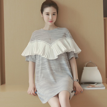 • 2016韓國新款孕婦裝甜美顯瘦褶皺拼接短袖孕婦連衣裙 /