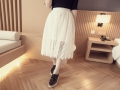 2016韓版鏤空蕾絲羽毛中長款半身裙女純色網(wǎng)紗裙子紗裙半身裙批發(fā) /