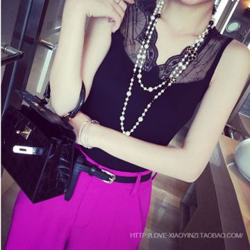 夏季韓版女裝蕾絲莫代爾鏤空拼接吊帶式打底衫無袖蕾絲吊帶背心 /