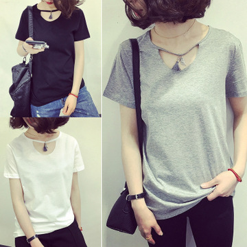 2016春夏新款顯瘦純色掛飾短袖打底衫女式T恤最新地攤貨源批發(fā) /