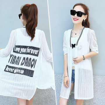 超薄蕾絲衫夏季空調(diào)衫雪紡中長款披肩開衫外套防曬衣 /