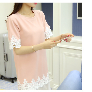 2016新款女裝韓版鉤花花邊拼百褶荷葉邊顯瘦連衣裙 /