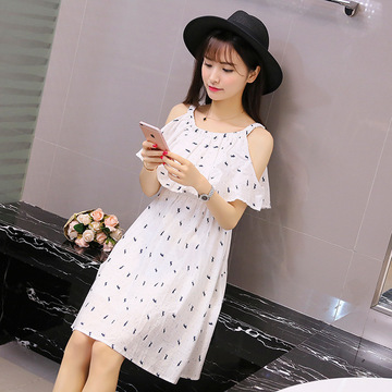 2016小清新森系印花高腰收腰顯瘦連衣裙 /