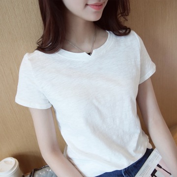2016夏季韓版竹節(jié)棉純色v領(lǐng)短袖t恤女寬松大碼學(xué)生打底衫潮純棉 /