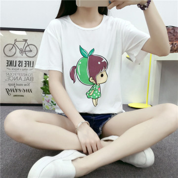 2016夏季韓版修身顯瘦卡通印花短袖t恤女圓領(lǐng)學(xué)生百搭打底衫潮 /