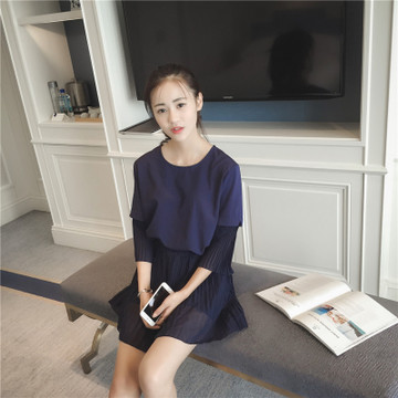 2016夏裝新款韓版中袖雪紡上衣百褶闊腿褲兩件套 套裝一件代發(fā) /