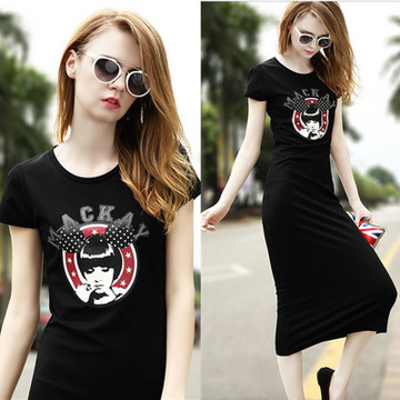 2016夏裝歐洲站新款潮字母修身休閑長裙連衣裙顯瘦圓領連衣裙棉 /
