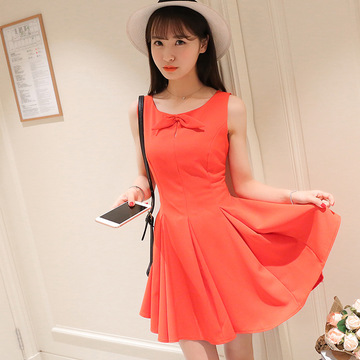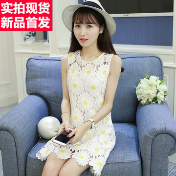 【實拍】2016夏裝新款韓版時尚清新蕾絲花朵圓領(lǐng)無袖連衣裙 /