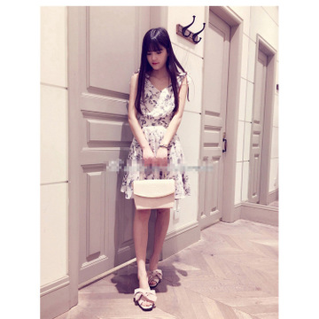 2016春夏季新款日系復(fù)古印花朵V領(lǐng)蝴蝶結(jié)連衣裙SWFO161191 /