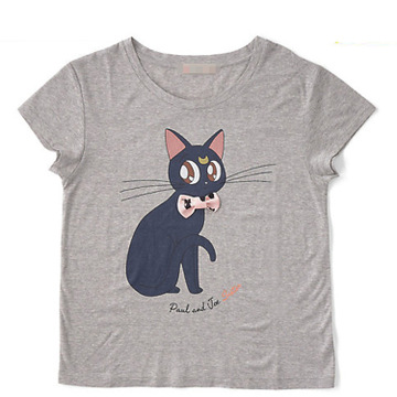 2016夏季新款 美戰(zhàn)美少女戰(zhàn)士 粉色蝴蝶結(jié)露娜貓咪印花短袖 /