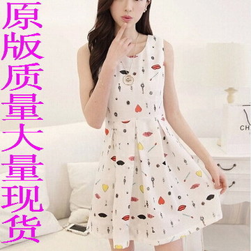 2015夏季新款韓版氣質(zhì)修身雪紡印花裙子 /