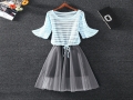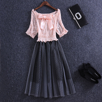 百褶中袖連衣裙扇子腰帶 現(xiàn)貨字母拼網(wǎng)紗連衣裙 天貓連衣裙批發(fā) /