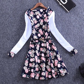 白袖子碎花連衣裙 2016夏季熱銷新款甜美連衣裙 女款連衣裙 /