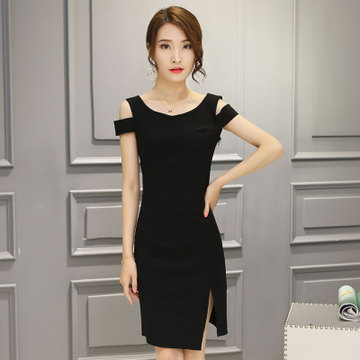 2016歐美高端大牌時(shí)尚露肩加大碼中長(zhǎng)款后V領(lǐng)性感包臀連衣裙 /