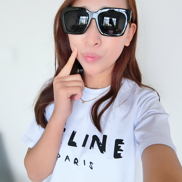 2016春夏純棉趙薇同款字母LOGO水墨印花寬松韓版短袖女潮T恤 /