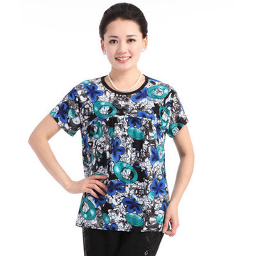 爆款中老年冰絲媽媽裝 夏季女裝 圓領(lǐng)中老年婦女短袖t恤地攤批發(fā) /