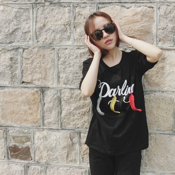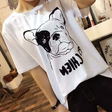2016韓國(guó)代購(gòu)新款?yuàn)W代爾體恤植絨字母斗牛犬 短袖T恤衫批發(fā) 代發(fā) /