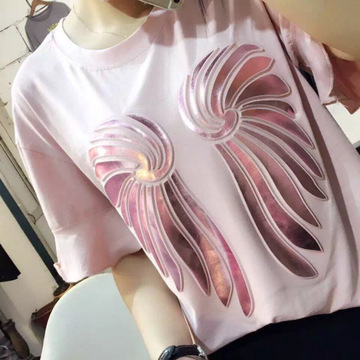 批發(fā)韓國(guó)東大門(mén)代購(gòu)款亮片體恤 爆款天使翅膀荷葉袖短袖T恤衫代發(fā) /