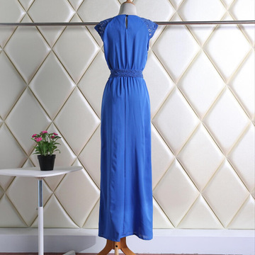 2016春秋新款純色時尚禮服女圓領蕾絲拼接短袖長款連衣裙 爆款 /