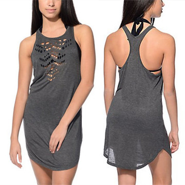 2016歐美新款女裝 速賣通ebay 鏤空燒花性感露背休閑背心連衣裙潮 /