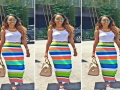 2016速賣通ebay夏季性感兩件套歐美情趣連衣裙條紋長(zhǎng)裙 /