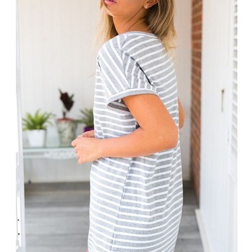 速賣通ebay2016夏季條紋短袖寬松簡(jiǎn)約連衣裙現(xiàn)貨 /
