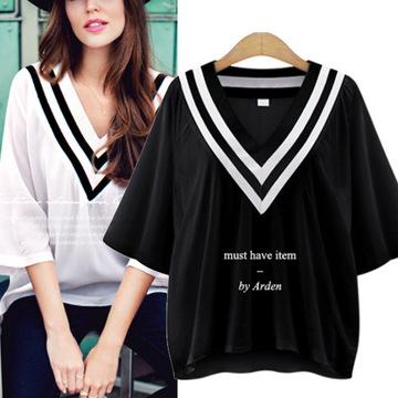 大碼女裝加肥加大夏裝 200斤胖MMV領(lǐng)T恤胖妹妹寬松 /