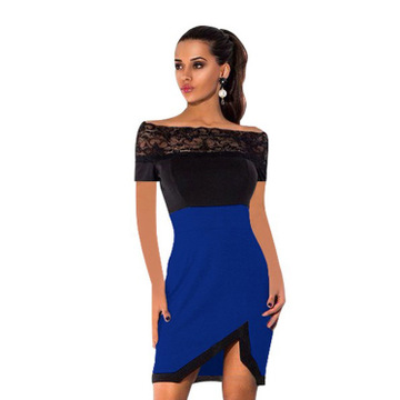 速賣通ebay歐美夏季新品時尚蕾絲拼接抹胸性感修身連衣裙 /