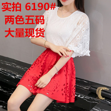 2016新款夏季女裝時(shí)尚甜美淑女顯瘦蓬蓬裙蕾絲兩件套連衣裙套 /