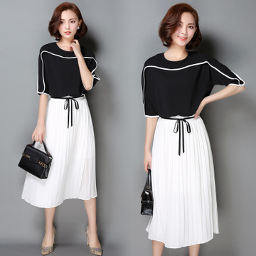 實拍連衣裙女夏季新款女裝名媛小香風雪紡百褶套裝兩件套裙 /