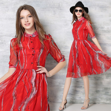 -歐洲站2016新款優(yōu)雅修身印花雪紡連衣裙 /