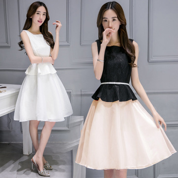 實拍2016新款潮韓版性感蕾絲歐根紗中長款蓬蓬連衣裙子女 /