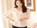 2016春裝新款棉白色修身前桃心后V領(lǐng)雪紡打底襯衫 /