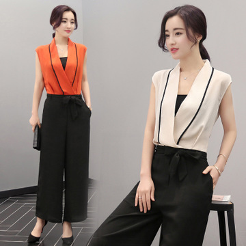 2016夏季連體褲 女式休閑套裝現(xiàn)貨韓版純色褲套裝雪紡衫廠家直銷 /