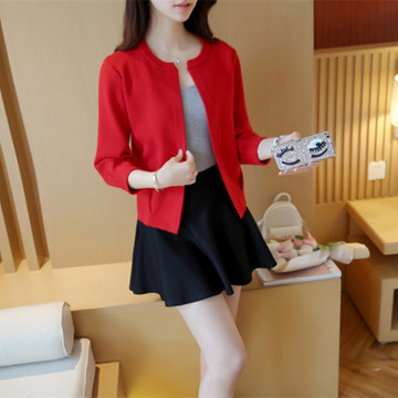 春裝新款圓領(lǐng)七分袖純色寬松短款小披肩針織開(kāi)衫毛衣女外套批發(fā) /